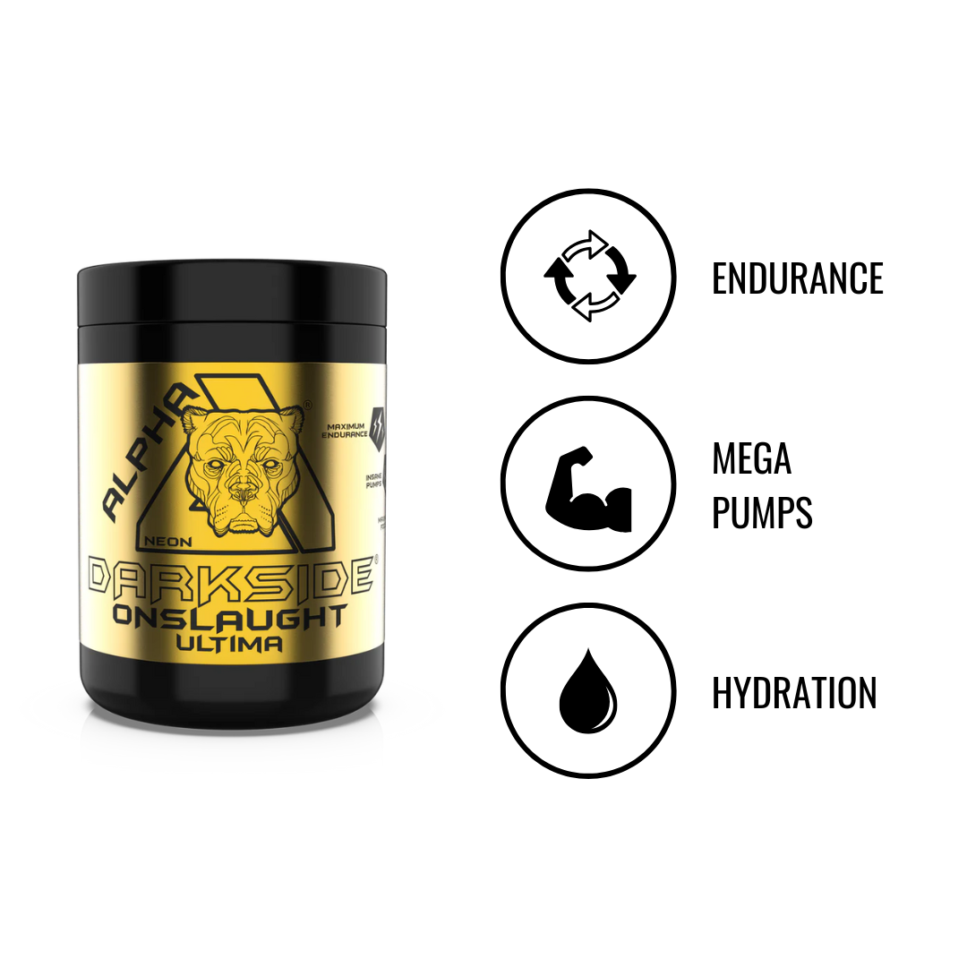 Take your training to the next level with Alpha Neon Darkside Onslaught Ultima, the ultimate pre-workout formula engineered for explosive energy, intense focus, and unmatched endurance. Each serving combines advanced, clinically dosed ingredients to push your limits, enhance pumps, and support mental clarity for peak performance every session.